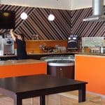 In the café fitout project pictured below a traditional coffee shop feel was adopted in terms of simple layout and furniture, whilst achieving a distinctive look via a strong colour scheme and contemporary fittings.